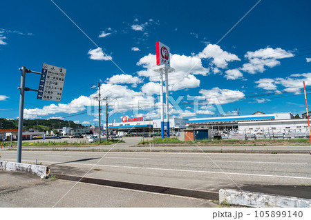 コメリ 広大なホームセンター 夏晴れの青空 新潟県魚沼市中原