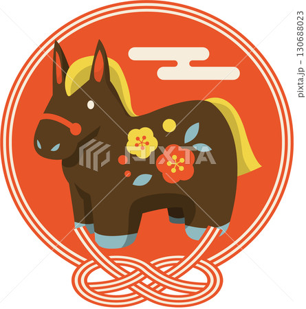 午年アイコン03レトロカラー・白馬・鮑結び・かわいい・イラスト