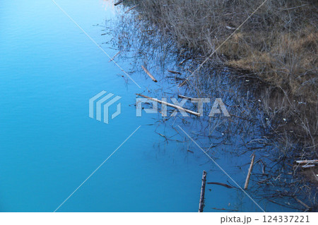 枯れ木が浮かぶ湖