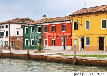 Burano, Italy colorful houses, view from the sea