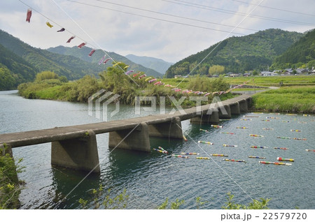 四万十川 一斗俵沈下橋 丸太鯉のぼり流し