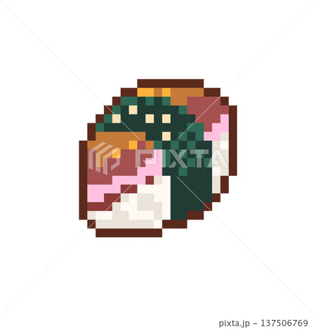 Pixel Art Unagi Sushi Icon. Retro 8 Bit Japanese Eel Food Vector Illustration for Game UI, Stickers and Menu Design