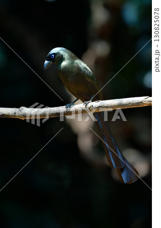 タイなど、東南アジアの熱帯雨林で見られる黒い森林性の鳥、クロラケットオナガ