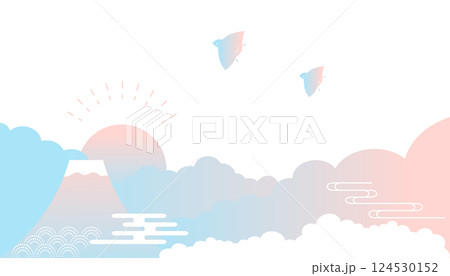 和風イメージの朝焼けと富士山の風景イラスト 年賀状背景