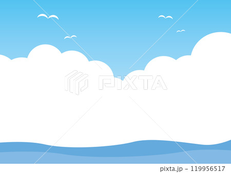 雲 背景 シンプル グラデーション 空飛ぶカモメと海