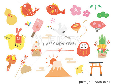 正月と年賀状の縁起物イラスト素材セット
