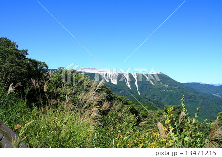 天狗の森から鳥形山を眺める 秋始め (天狗高原 四国カルスト)