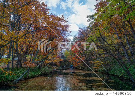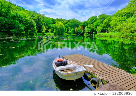 大自然が美しい北海道富良野市 鳥沼公園 緑の沼の風景