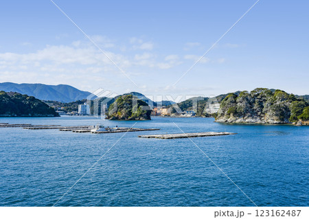 鳥羽マリンターミナルより名勝「三ツ島」、「イルカ島」を望む朝景色/伊勢志摩国立公園