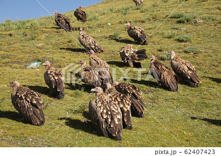 中国・四川省色達 ラルン・ガル・ゴンパ 鳥葬台のハゲワシ