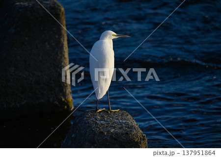 水辺の白い鳥 シラサギの優雅な立ち姿