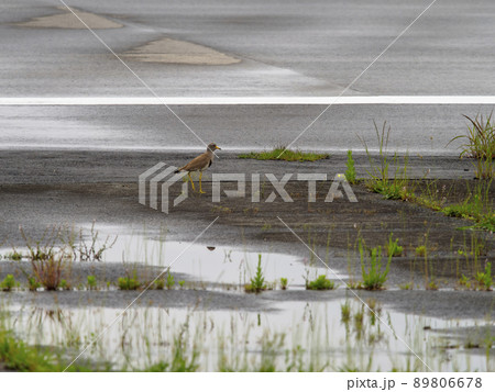生き物 鳥類 ケリ、石垣島の水田で雨に濡れながら休息中。こんな所にいて良いのでしょうか