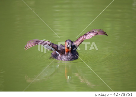 生き物 鳥類 身震いする夏羽のハジロカイツブリ