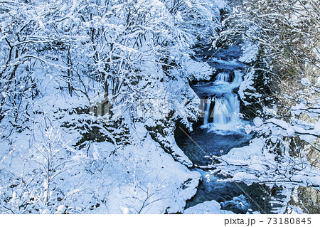 雪で白化粧された冬の広瀬川〜鳳鳴四十八滝