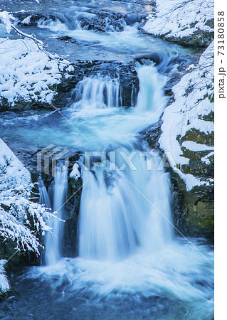 真っ白な霧氷に囲まれた鳳鳴四十八滝の冬景色 Ver3
