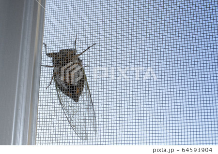 網戸に止まるクマゼミ・蝉のお腹側からとれた昆虫写真