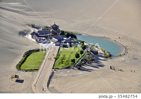 甘粛省敦煌市鳴沙山砂丘とオアシスの月牙泉