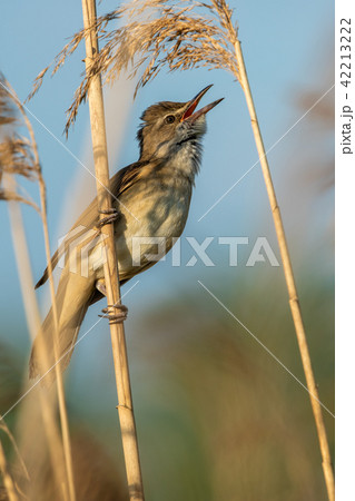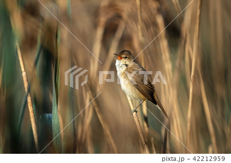 Beautiful nature scene with Great reed warbler