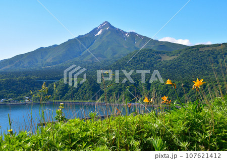 初夏の富士野園地 エゾカンゾウの花と利尻山