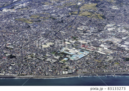 日本の小田原都市景観 7月。JR東海道本線 鴨宮駅 北口や鴨居駅開業50周年記念などを望む=22日