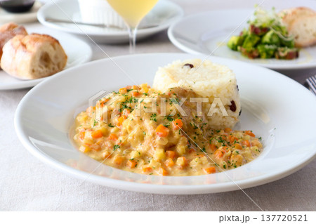 鶏のカレークリーム煮込み マドラスライス添えの洋食ランチ