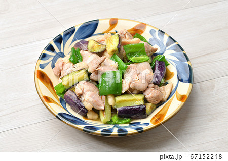 鶏モモ肉と、茄子、ピーマンのバター炒め(岩塩まぶし)。