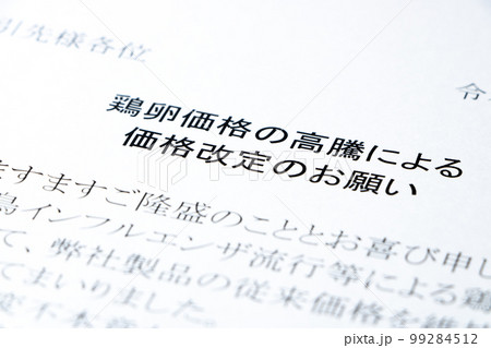 「鶏卵価格の高騰による価格改定のお願い」の文書。