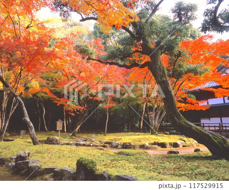 聚遠亭のもみじ紅葉 茶室楽庵と紅葉