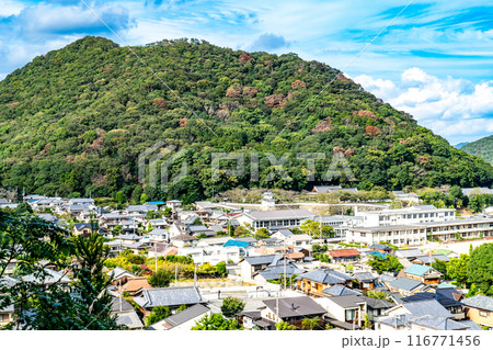 龍野城と鶏籠山と城下町の初秋の風景 兵庫県たつの市
