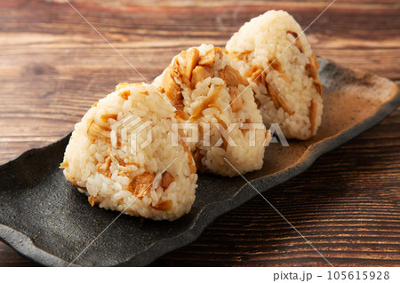 鶏としめじの醤油麹炊き込みご飯のおにぎり