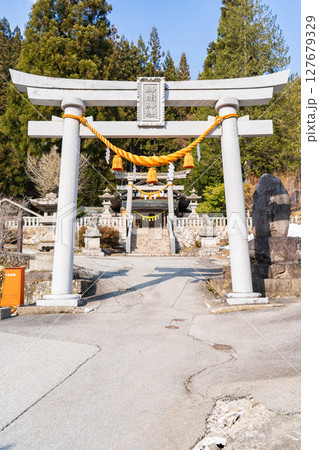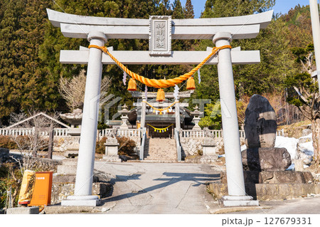 奥飛騨温泉郷の神社 神明神社 鳥居(いで湯まつりの会場)郷土芸能の鶏芸を奉納 岐阜県高山市奥飛騨温泉
