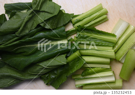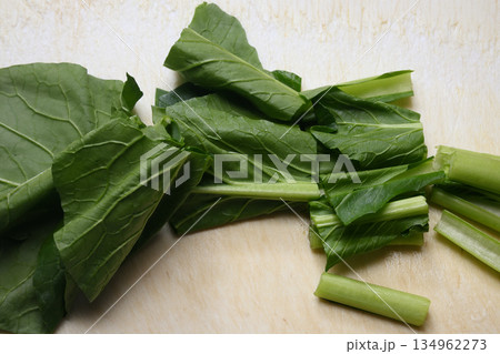 まな板の上でカットした小松菜