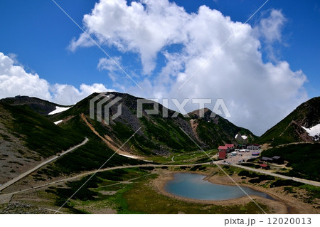 乗鞍バスターミナルと鶴が池、夏の雲_大黒岳より