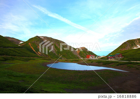 岐阜県高山市の乗鞍岳(畳平)の鶴ヶ池と大黒岳を見る