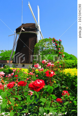 【大阪府】花博記念公園鶴見緑地の風車(バラ園)