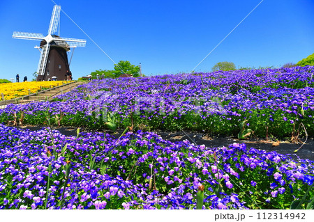 【大阪府】花博記念公園鶴見緑地の風車の丘(ビオラ)
