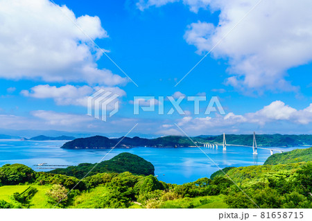鷹島肥前大橋から鷹島の眺め パノラマ 【長崎県松浦市鷹島】