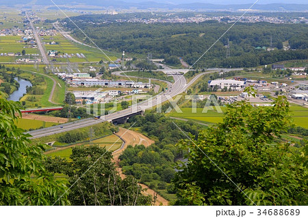 嵐山展望台から見る旭川鷹栖インターチェンジ。