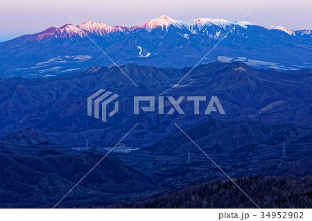 金峰山・鷹見岩から望む夜明けの南アルプスと茅ヶ岳