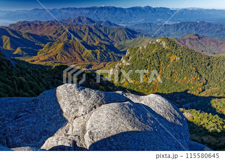 秋色の奥秩父・大日岩から見る鷹見岩と南アルプス