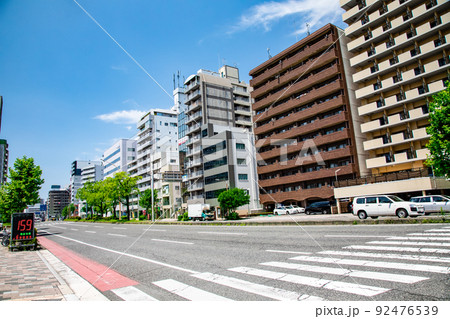 駅前通りの宝町から国道2号線方面を展望しています。富士見町の明るいオフィスビル風景をどうぞ。広島県