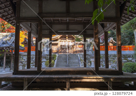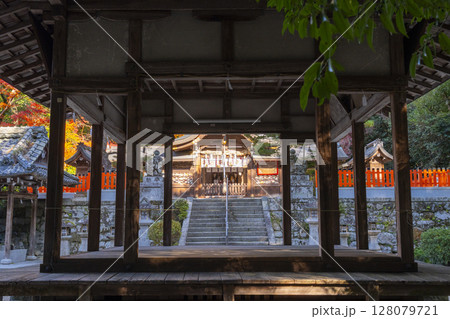 秋の京都 鷺森神社 舞殿から見える拝殿