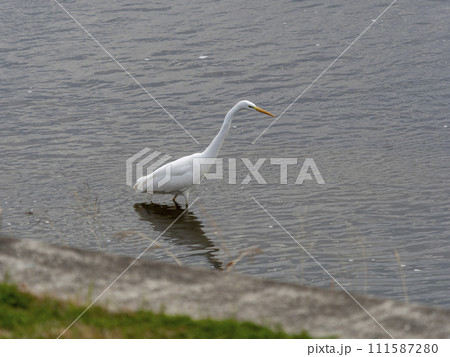 Great white ergret by Tokyo Bay in Tokyo Japan