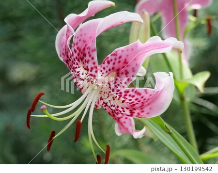 猛暑の8月に咲いた美しいピンク色の鹿の子百合(カノコユリ)の花