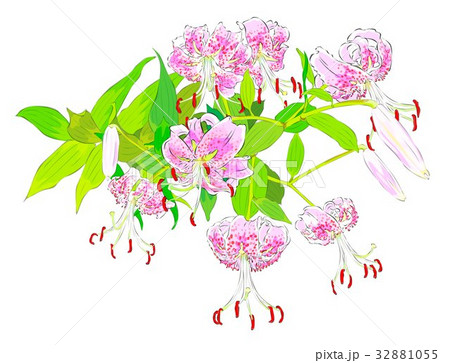 ピンク色の百合の花、香り高い鹿の子百合の花、初めてヨーロッパで知られるようになった日本のユリ