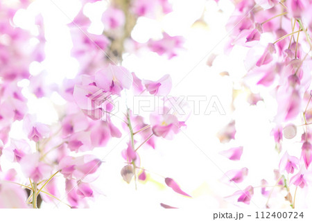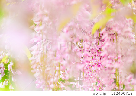 うららかな春の新緑光芒に映える本紅藤の花(クローズアップ) (鹿央古代の森交流施設「里やま」)山鹿市