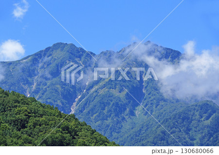鹿島槍黒沢高原から望む初夏の北アルプス 爺ヶ岳
