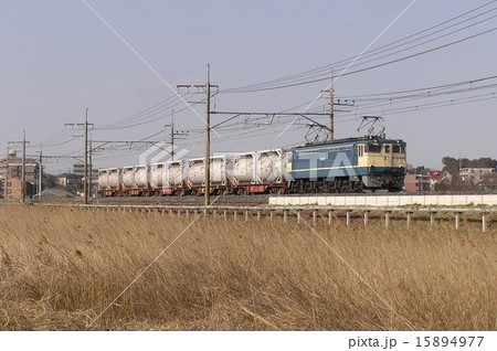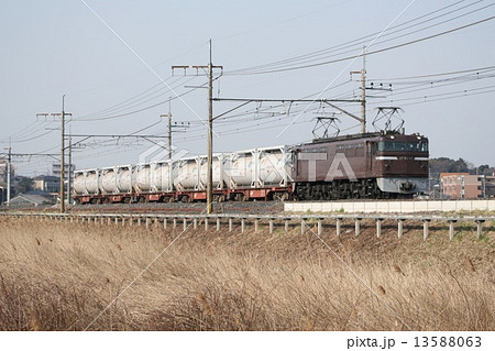 見沼田んぼ:武蔵野線を行く鹿島貨物列車(茶ガマ:EF65形57号機)