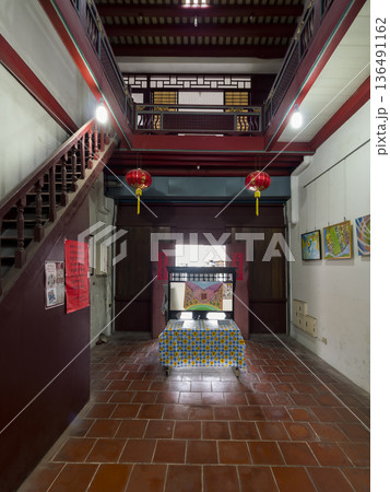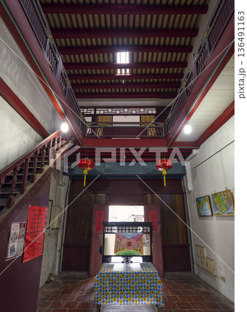 The architectural atrium of the Lukang Folk Arts Museum in Changhua, Taiwan.