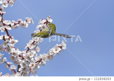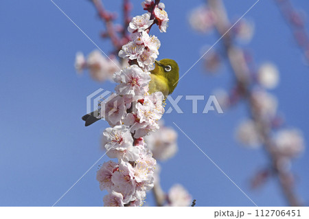 満開の白梅を独り占めにするメジロさん ( 春イメージ )